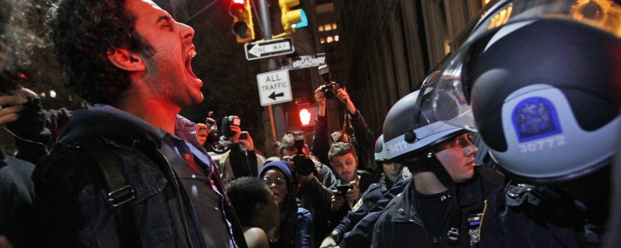 Occupiers clash with police in Zuccotti Park. Photo courtesy of the Huffington Post